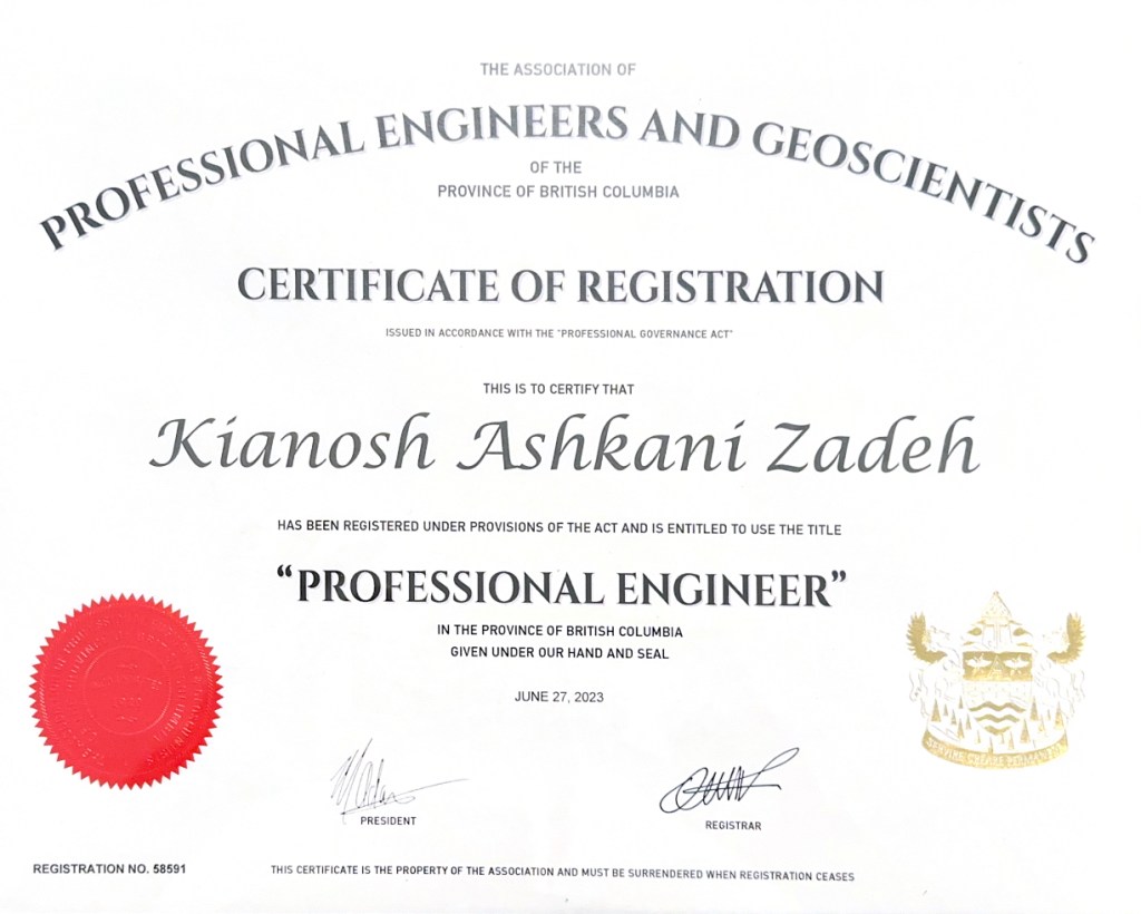 Dr. Kianosh Ashkani Zadeh, Ph.D., P.Eng.